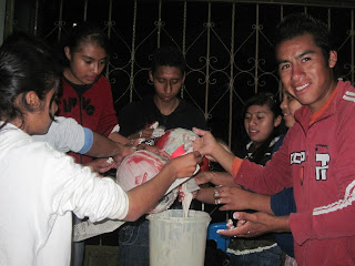 After choir practice, we decided that we should make piñatas for Mexico's Independence Day, which is this next week. So here we are, making piñatas.